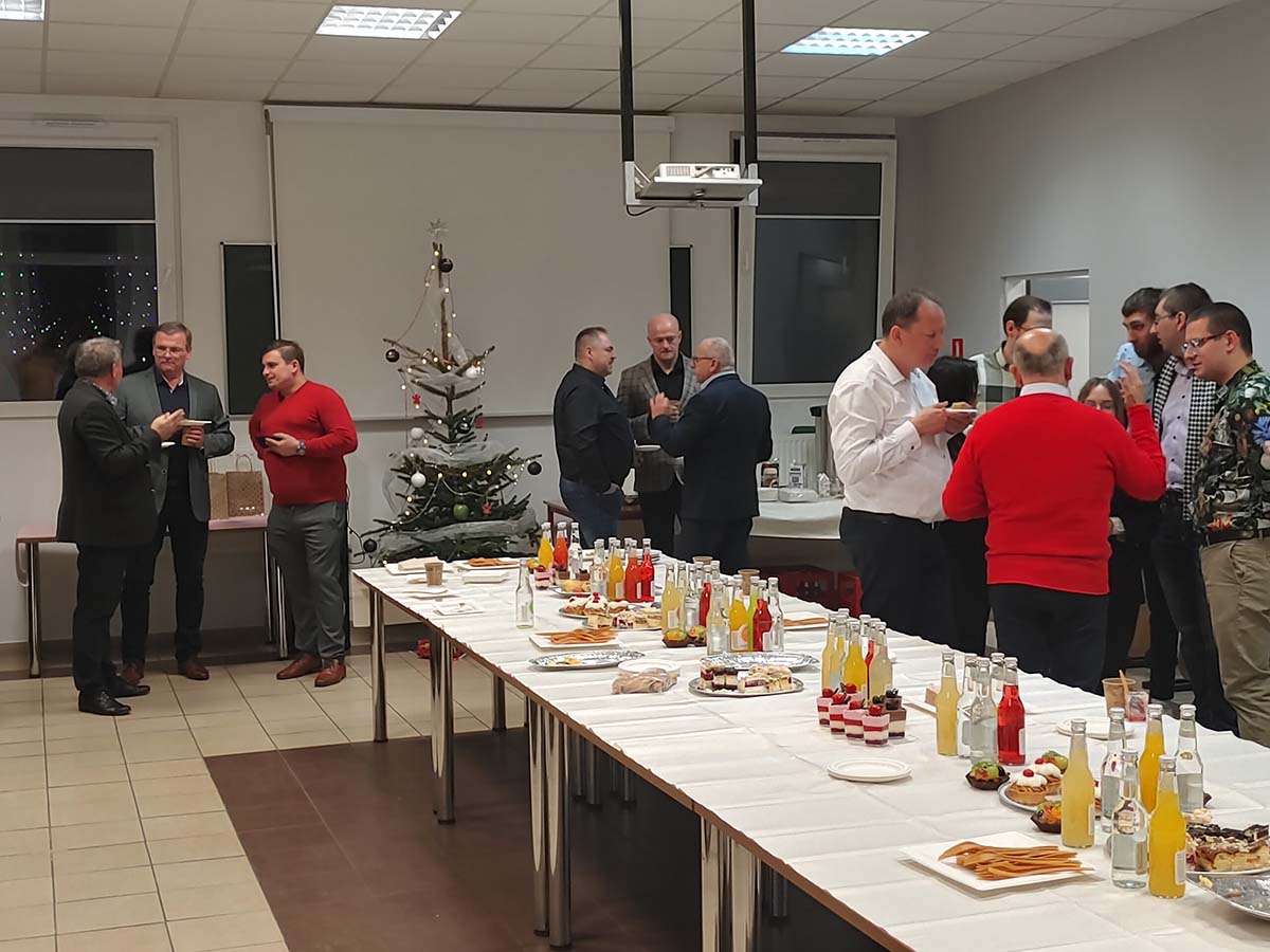 18 grudnia Studenci, Wykładowcy oraz Pracownicy Uczelni spotkali się na pierwszej wspólnej świątecznej Wigilii, w trakcie, której złożyliśmy sobie życzenia, a Pan Rektor dr inż. Michał Sójka, podarował wszystkim drobne prezenty.